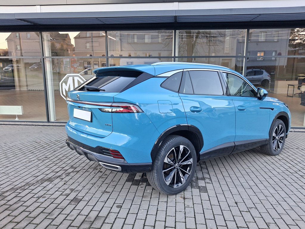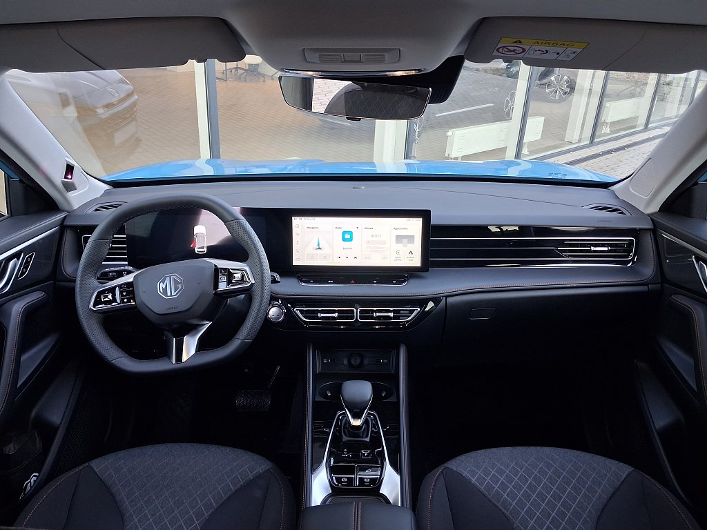 Asistenční systémy MG Pilot, Inteligentní asistent rychlosti (ISA), Automatické nouzové brzdění s detekcí chodců, cyklistů i motocyklů (AEB), Systém udržování v jízdním pruhu (LKA), Upozornění na změnu jízdního pruhu (LCA), Tempomat, Inteligentní adaptivní tempomat s funkcí udržování v jízdním pruhu (ICA), Inteligentní asistent rychlosti (ISA), Upozornění na únavu řidiče (UDW), Varování před čelním nárazem (FCW), Upozornění na vozy přijíždějící z boku při couvání (RCTA), Upozornění na vozy přijíždějící zezadu při otevírání dveří, Bezpečnost, Čelní airbagy řidiče a spolujezdce (x2), spínač deaktivace airbagu spolujezdce, Boční airbagy řidiče a spolujezdce (x2), hlavové (okenní) airbagy vpředu a vzadu (x2), Antiblokovací brzdový systém (ABS), Bezpečnost, Elektronický systém rozdělení brzdného účinku (EBD), Systém detekce mrtvého úhlu (BSD), Systém monitorování tlaku v pneumatikách (TPMS), 3bodový bezpečnostní pás na předních sedadlech s předpínačem a omezovačem zátěže (x2), 3bodový bezpečnostní pás na zadních sedadlech (x3) s předpínačem a omezovačem zátěže (x2), Elektronický stabilizační systém (ESP), Asistent rozjezdu do kopce (HLA), Upozornění na nezapnuté bezpečnostní pásy, Výškově nastavitelné pásy vpředu, Systém ISOFIX na zadních sedadlech (2x), Světla a viditelnost, LED světlomety, Exteriér, Zadní parkovací senzory, LED denní světlomety, LED zadní světlomety, Automatické světlomety, Přední mlhové světlomety, Funkce "follow me home", Stříbrné střešní ližiny, Zatmavená zadní okna, 19" kola z lehkých slitin Diamond Blade, Vnější zpětná zrcátka vyhřívaná a manuálně sklopná, Interiér, Výškově a podélně nastavitelný volant, Středová loketní opěrka vpředu s úložným prostorem, Bezklíčový přístup a startování pomocí tlačítka, Přední i zadní okna elektricky ovládaná, okno řidiče s funkcí AUTO, Osvětlení interiéru vpředu i vzadu, 12V zásuvka, Sedadla, Sedadlo řidiče elektricky nastavitelné v 6 směrech, Sedadlo spolujezdce manuálně nastavitelné ve 4 směrech, 3 opěrky hlavy na zadních sedadlech, Zadní sedadlo sklopné, dělitelné v poměru 60:40, Pohodlí, Digitální klimatizace, Elektrická parkovací brzda (EPB) s funkcí Auto Hold, Centrální zamykání dveří s dálkovým ovládáním, Dešťový senzor, Zadní parkovací kamera, 12,3" digitální přístrojový štít, Audio a konektivita, Rádio AM/FM/DAB+, Audiosystém s 12,3" barevným dotykovým displejem (iSMART), Bez názvu, Zrcadlení smartphonu skrze Apple CarPlay®/Android Auto™, 4 USB porty (2 vpředu, 2 vzadu), Bluetooth® handsfree