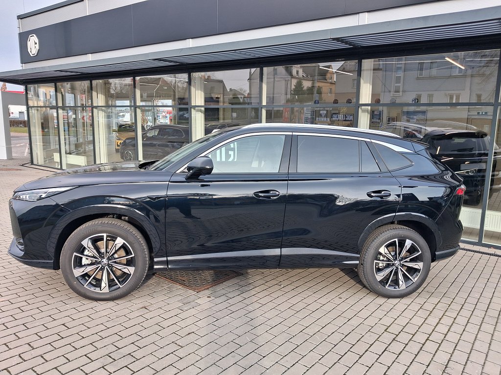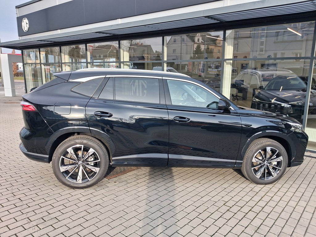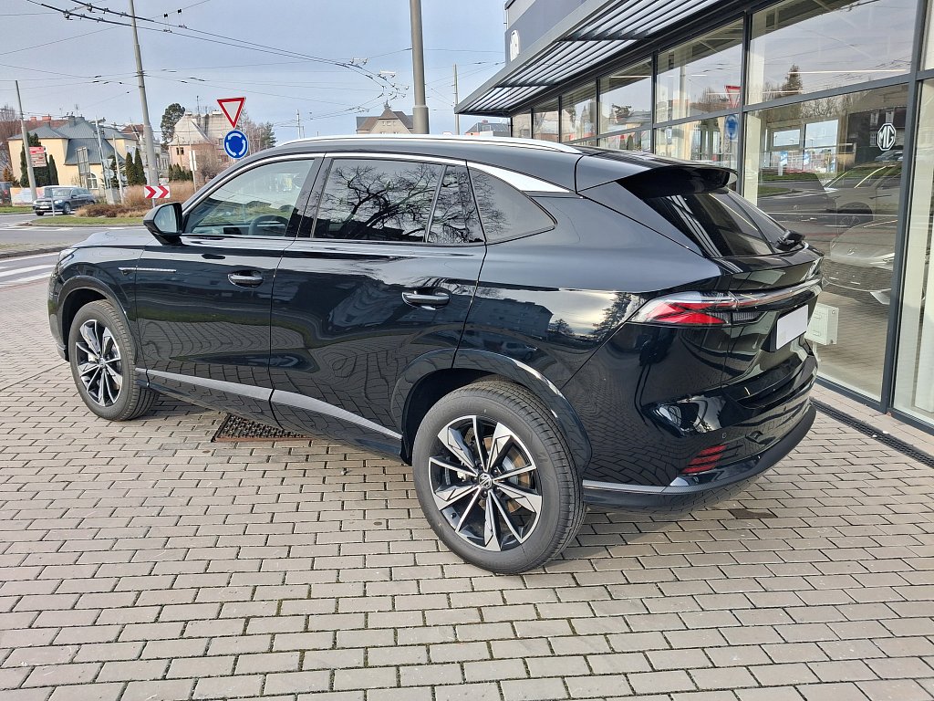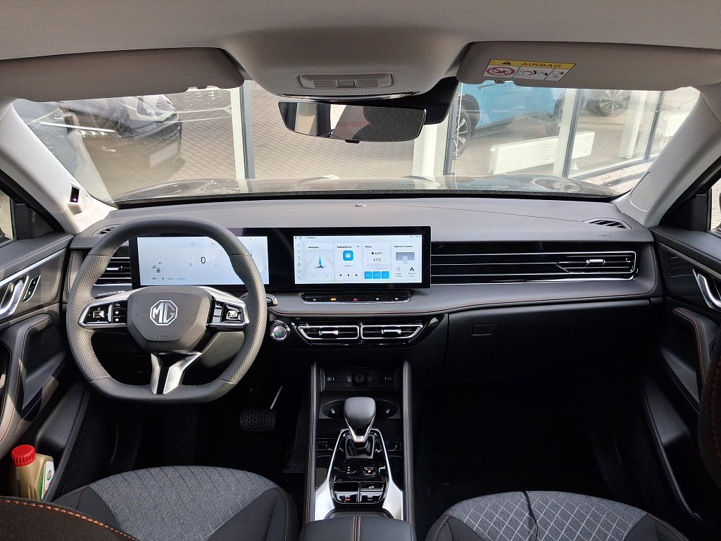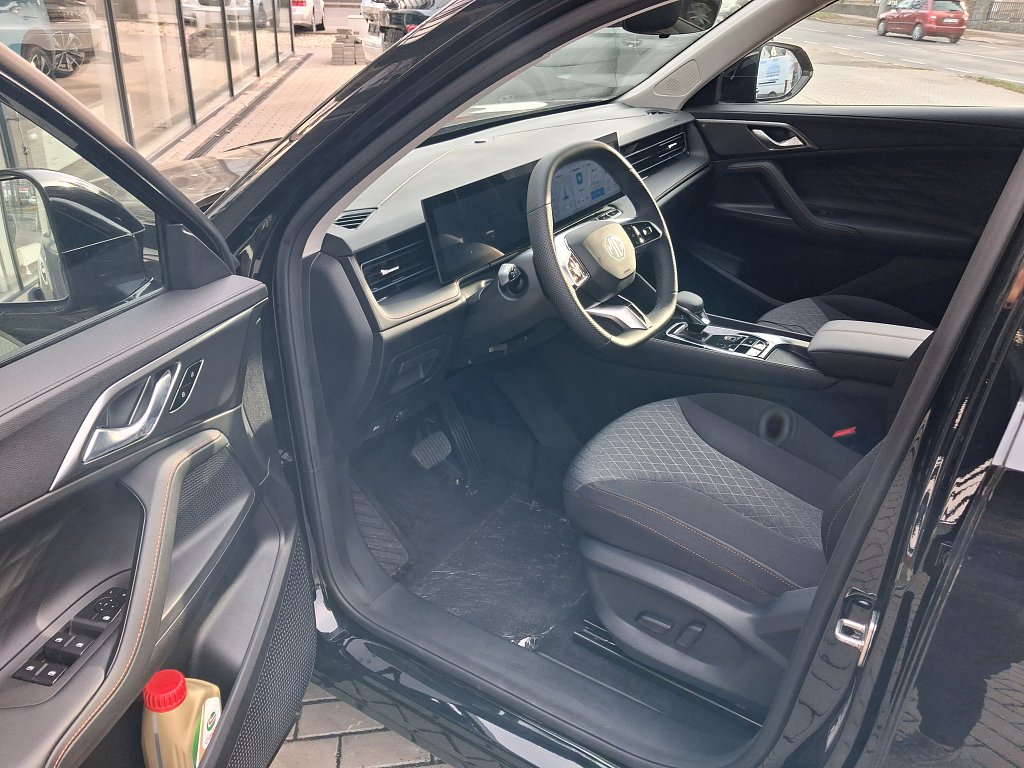 Asistenční systémy MG Pilot, Inteligentní asistent rychlosti (ISA), Automatické nouzové brzdění s detekcí chodců, cyklistů i motocyklů (AEB), Systém udržování v jízdním pruhu (LKA), Upozornění na změnu jízdního pruhu (LCA), Tempomat, Inteligentní adaptivní tempomat s funkcí udržování v jízdním pruhu (ICA), Inteligentní asistent rychlosti (ISA), Upozornění na únavu řidiče (UDW), Varování před čelním nárazem (FCW), Upozornění na vozy přijíždějící z boku při couvání (RCTA), Upozornění na vozy přijíždějící zezadu při otevírání dveří, Bezpečnost, Čelní airbagy řidiče a spolujezdce (x2), spínač deaktivace airbagu spolujezdce, Boční airbagy řidiče a spolujezdce (x2), hlavové (okenní) airbagy vpředu a vzadu (x2), Antiblokovací brzdový systém (ABS), Bezpečnost, Elektronický systém rozdělení brzdného účinku (EBD), Systém detekce mrtvého úhlu (BSD), Systém monitorování tlaku v pneumatikách (TPMS), 3bodový bezpečnostní pás na předních sedadlech s předpínačem a omezovačem zátěže (x2), 3bodový bezpečnostní pás na zadních sedadlech (x3) s předpínačem a omezovačem zátěže (x2), Elektronický stabilizační systém (ESP), Asistent rozjezdu do kopce (HLA), Upozornění na nezapnuté bezpečnostní pásy, Výškově nastavitelné pásy vpředu, Systém ISOFIX na zadních sedadlech (2x), Světla a viditelnost, LED světlomety, Exteriér, Zadní parkovací senzory, LED denní světlomety, LED zadní světlomety, Automatické světlomety, Přední mlhové světlomety, Funkce "follow me home", Stříbrné střešní ližiny, Zatmavená zadní okna, 19" kola z lehkých slitin Diamond Blade, Vnější zpětná zrcátka vyhřívaná a manuálně sklopná, Interiér, Výškově a podélně nastavitelný volant, Středová loketní opěrka vpředu s úložným prostorem, Bezklíčový přístup a startování pomocí tlačítka, Přední i zadní okna elektricky ovládaná, okno řidiče s funkcí AUTO, Osvětlení interiéru vpředu i vzadu, 12V zásuvka, Sedadla, Sedadlo řidiče elektricky nastavitelné v 6 směrech, Sedadlo spolujezdce manuálně nastavitelné ve 4 směrech, 3 opěrky hlavy na zadních sedadlech, Zadní sedadlo sklopné, dělitelné v poměru 60:40, Pohodlí, Digitální klimatizace, Elektrická parkovací brzda (EPB) s funkcí Auto Hold, Centrální zamykání dveří s dálkovým ovládáním, Dešťový senzor, Zadní parkovací kamera, 12,3" digitální přístrojový štít, Audio a konektivita, Rádio AM/FM/DAB+, Audiosystém s 12,3" barevným dotykovým displejem (iSMART), Bez názvu, Zrcadlení smartphonu skrze Apple CarPlay®/Android Auto™, 4 USB porty (2 vpředu, 2 vzadu), Bluetooth® handsfree